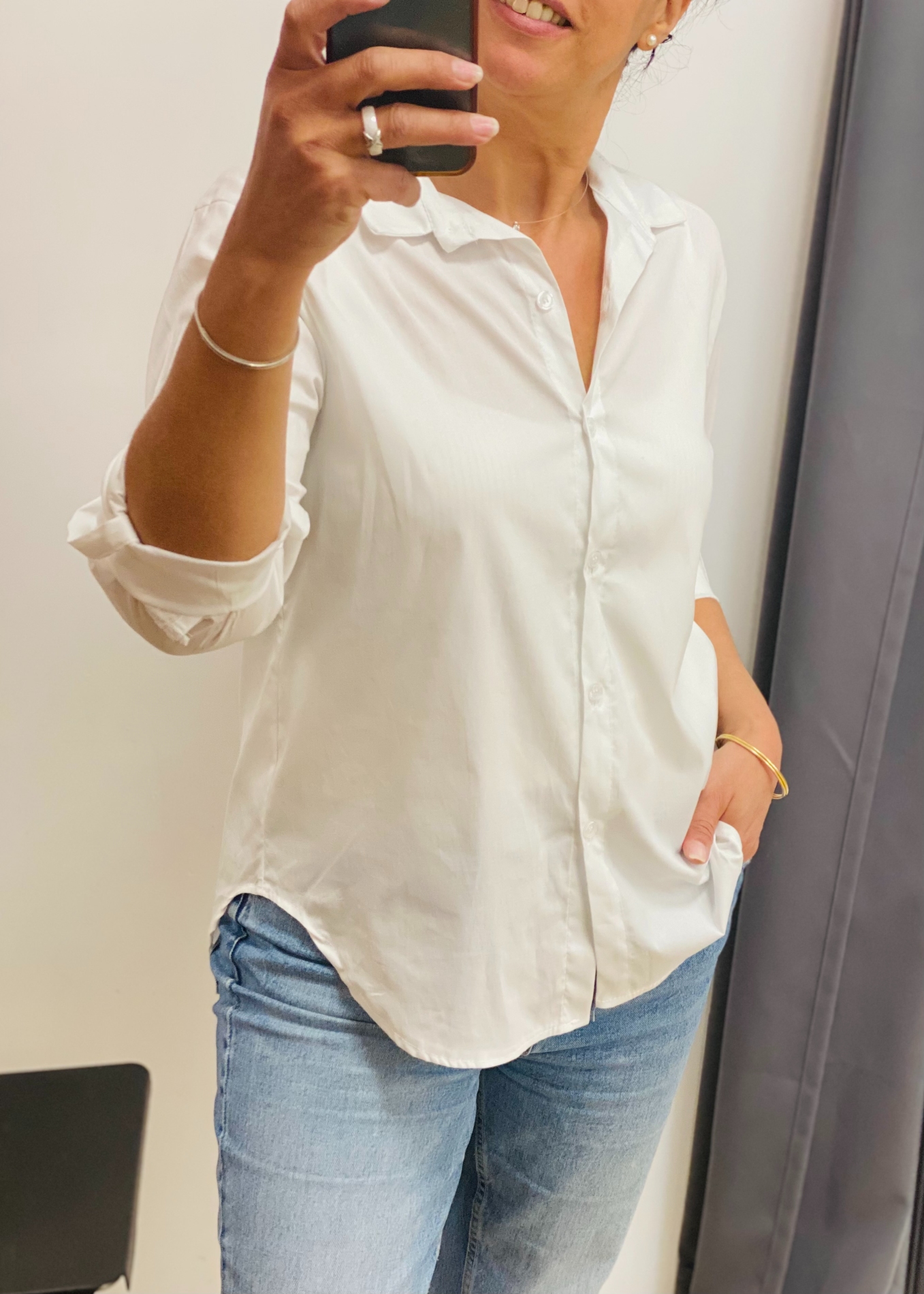 Entièrement boutonnée. Manches longue fermées par un petit bouton.
